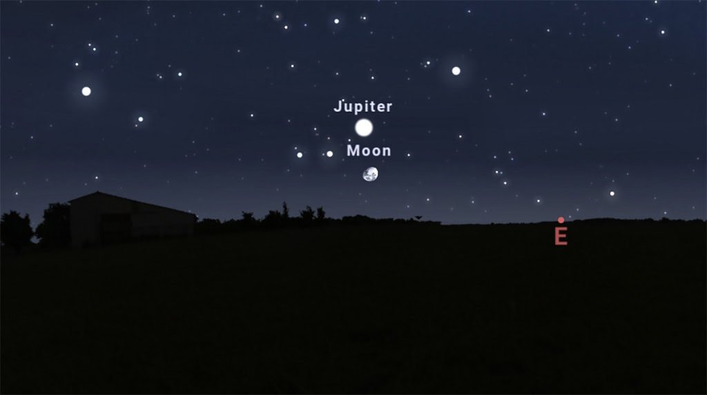 Dando inĂcio à “turnĂŞ mensal” de dezembro pelos planetas do Sistema Solar, a Lua se encontra com JĂşpiter neste domingo